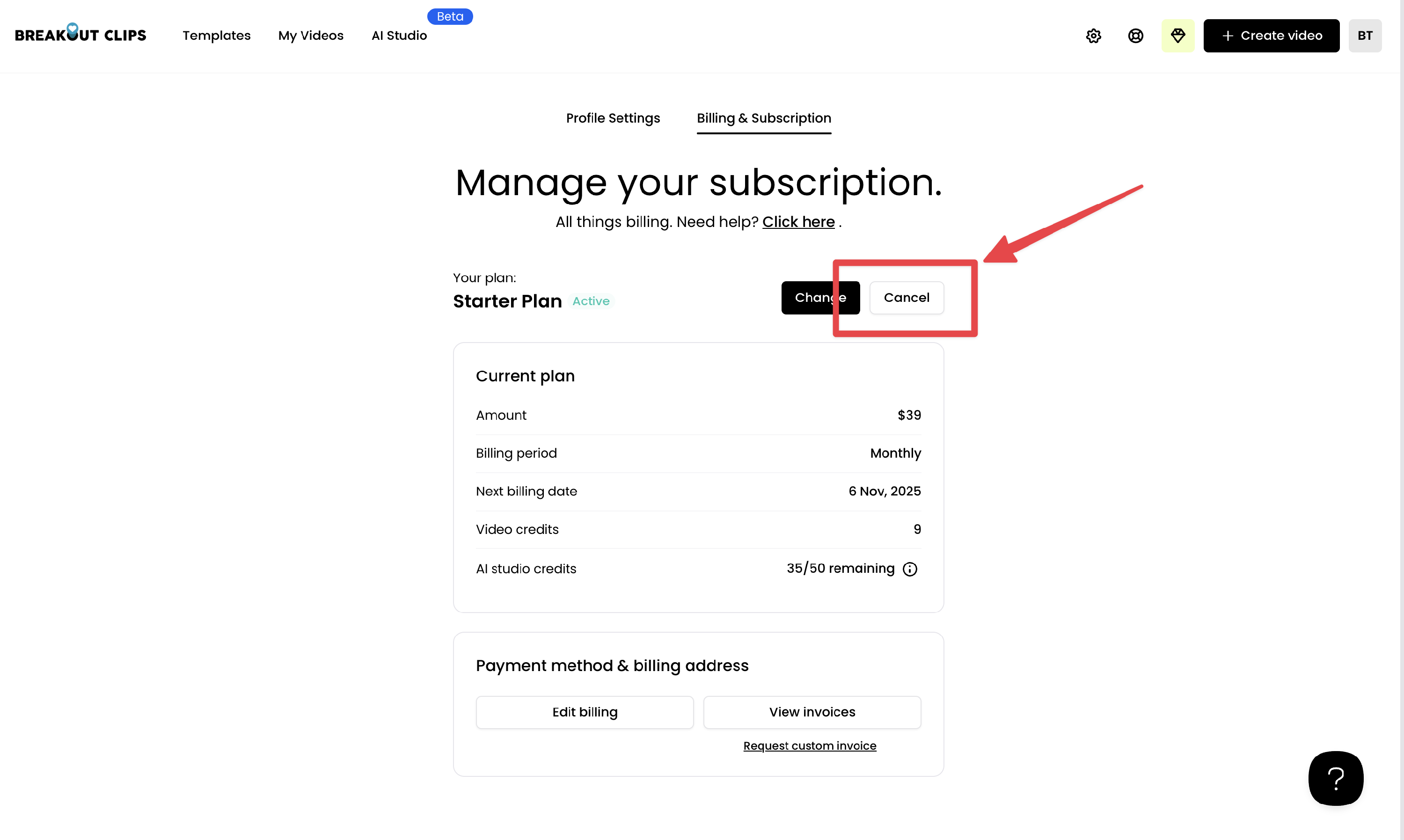 ⏱️ If you don’t receive a cancellation confirmation within 30 minutes, please contact us at support@breakoutclips.com, and we'll look into that as a matter of urgency.
