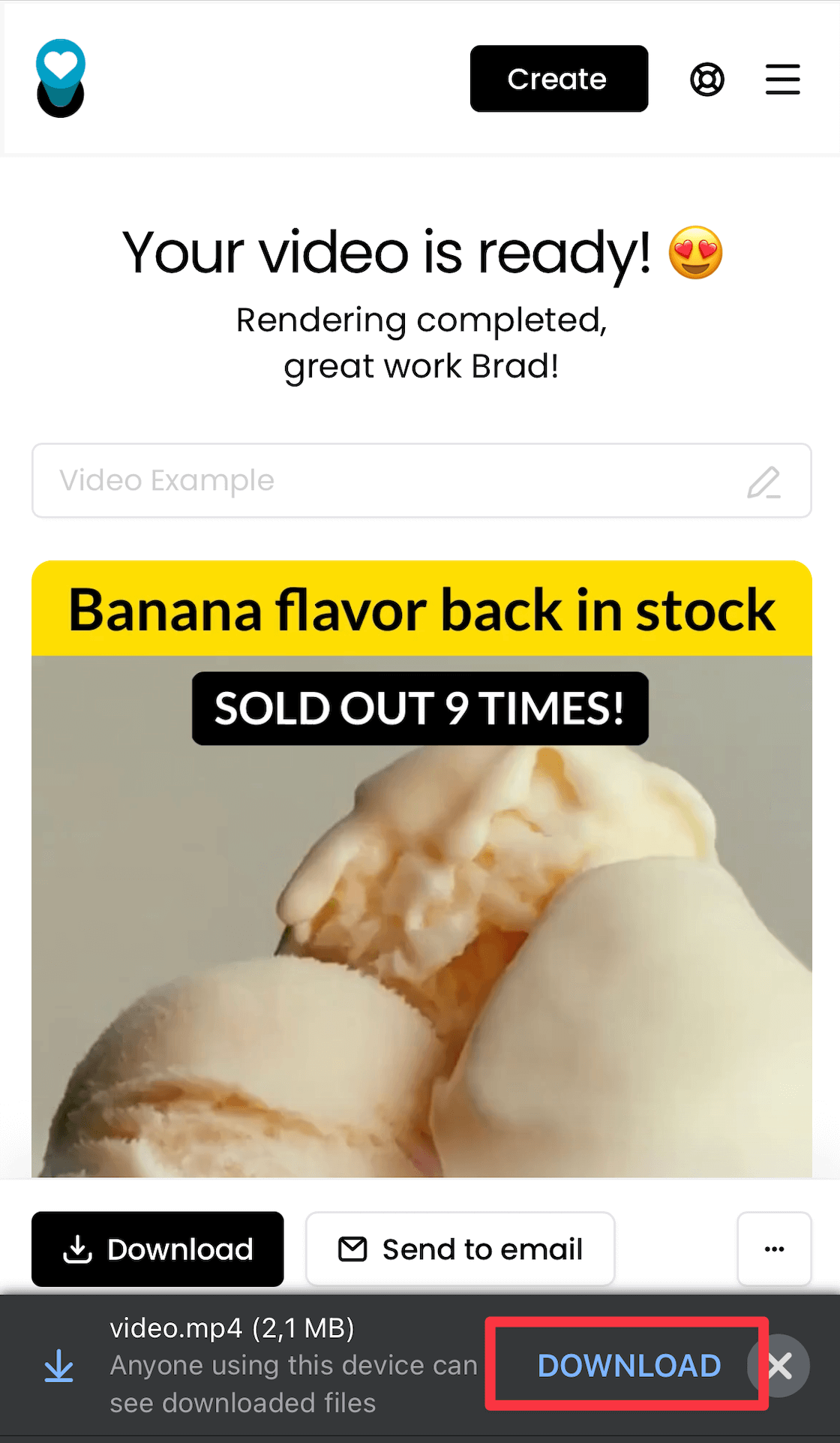 Yes - it's 100% possible to download your video on mobile (it's easy, fun and quick!)
