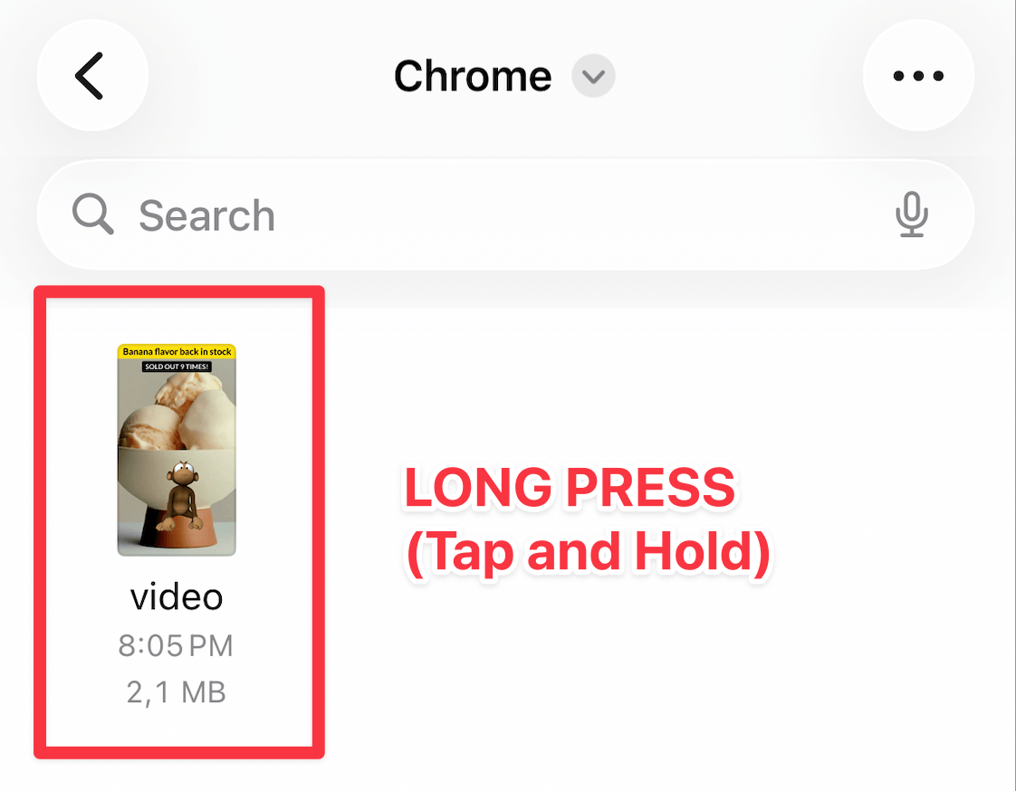 After you tap "Open in downloads" (previous step), it'll open the video file in the downloads folder as shown below.