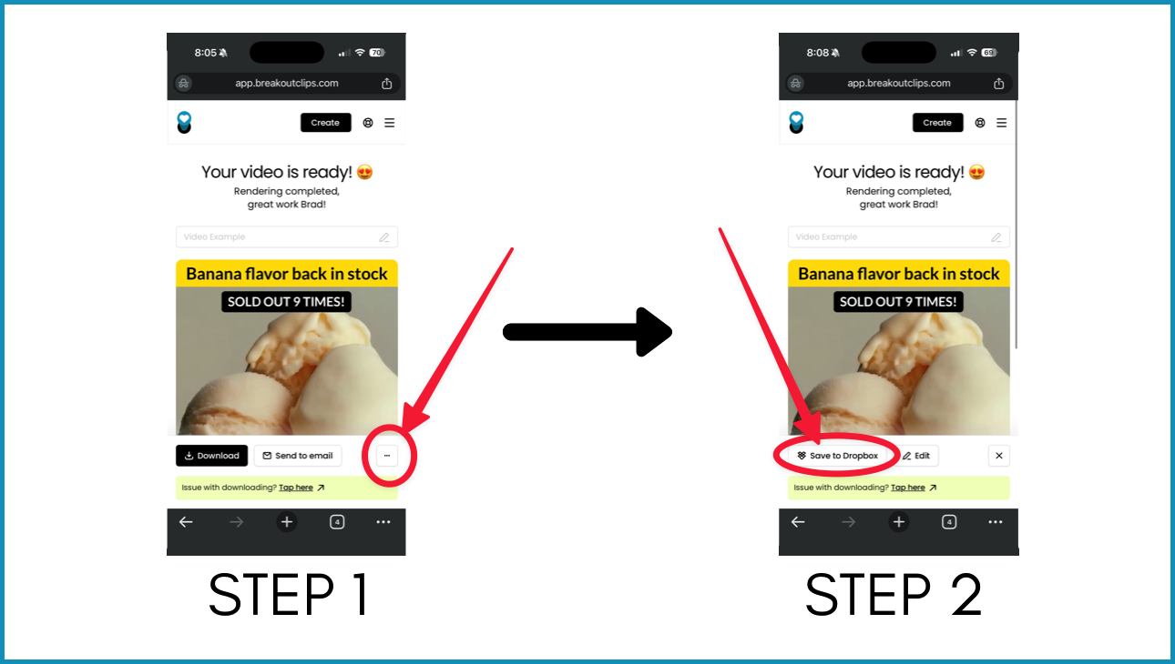 Using our Dropbox integration, you can save your video file directly to your Dropbox storage so you can access it anywhere, anytime.