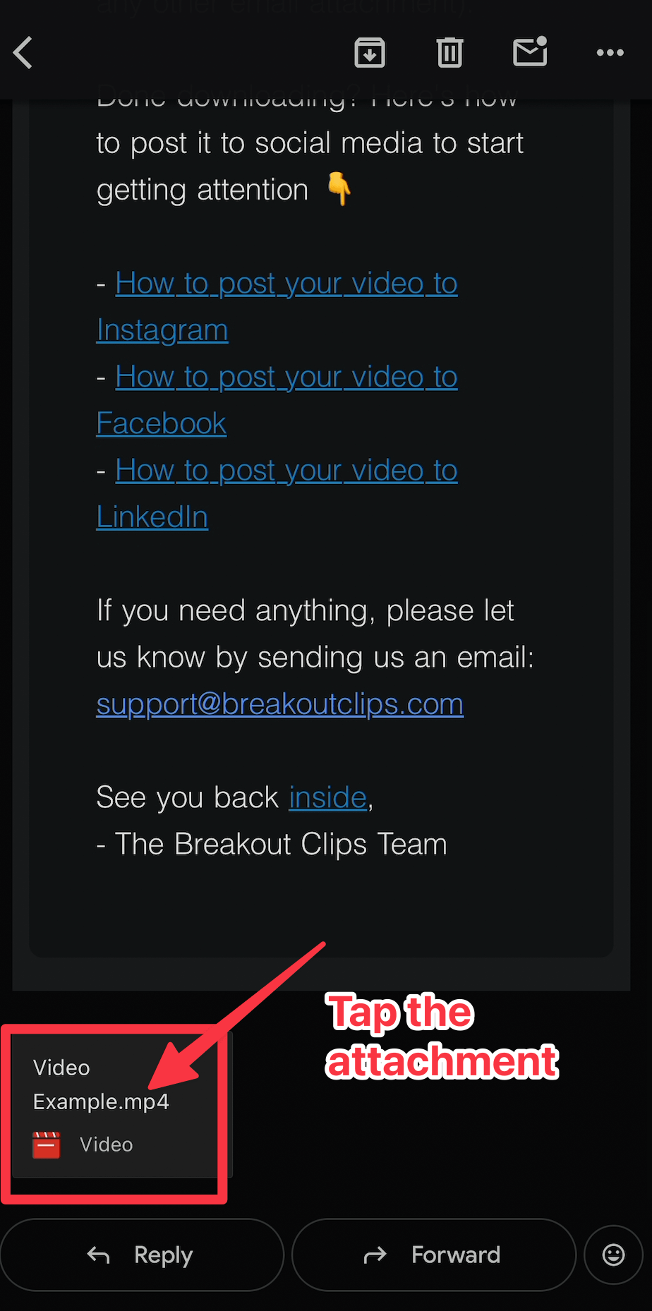 Open the email, and scroll down to view the attachment at the bottom. Tap the attachment.