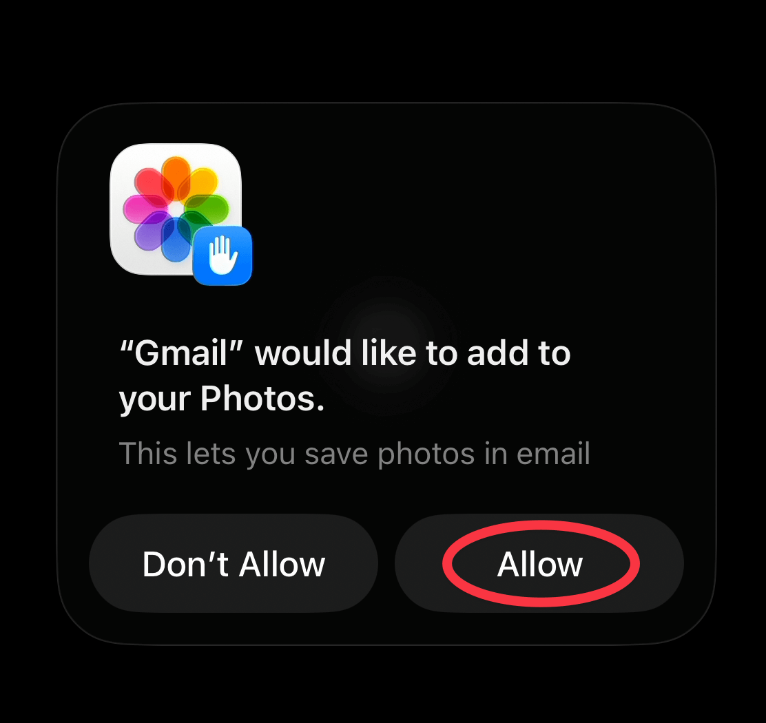 Gmail might ask for permissions to be able to save the video to your camera roll, you need to tap "Allow". That's it! Your video will now be in your camera roll.