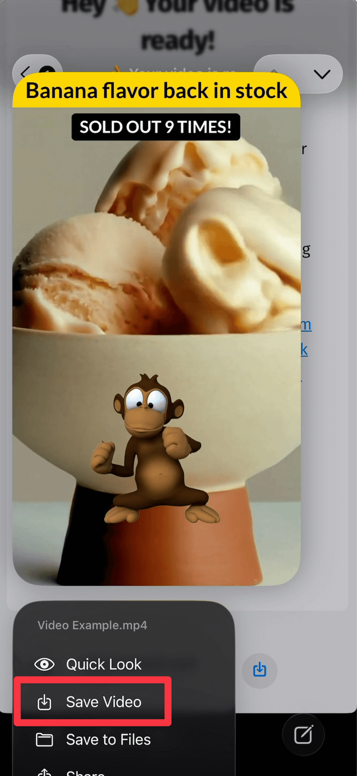 This will open a preview, along with a menu as shown below. Tap "Save Video".