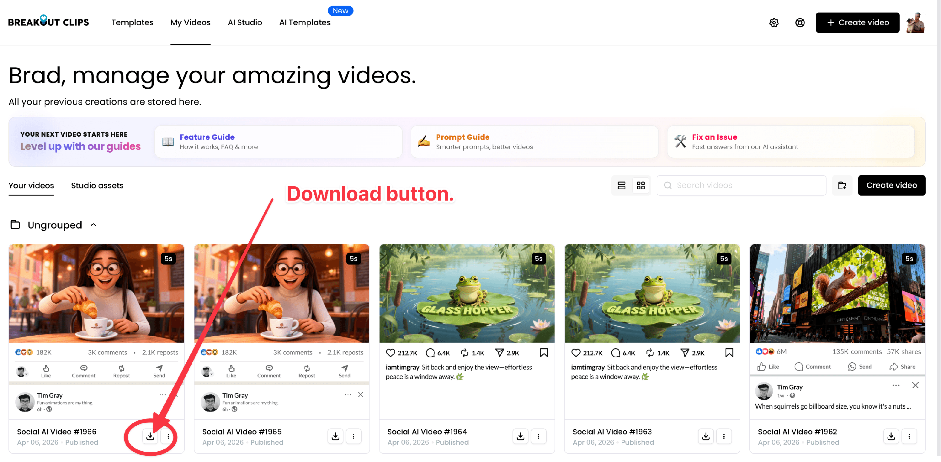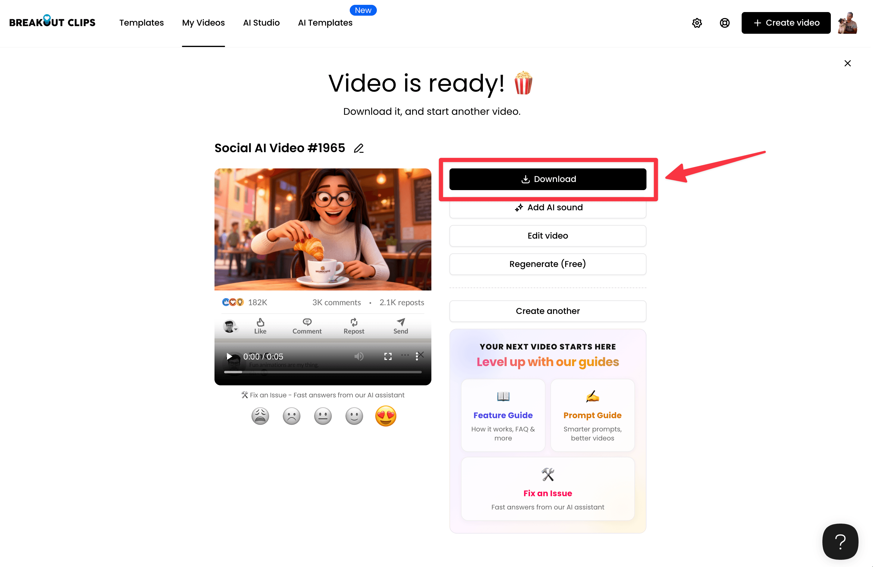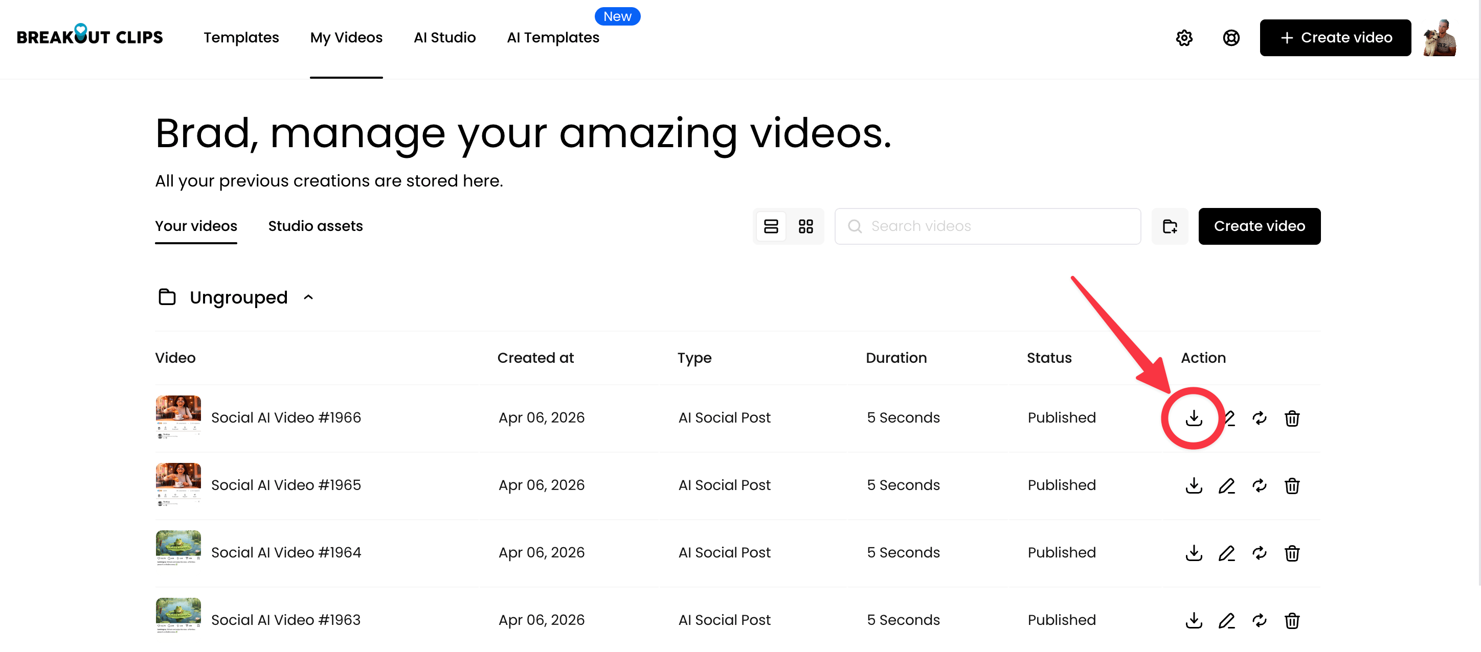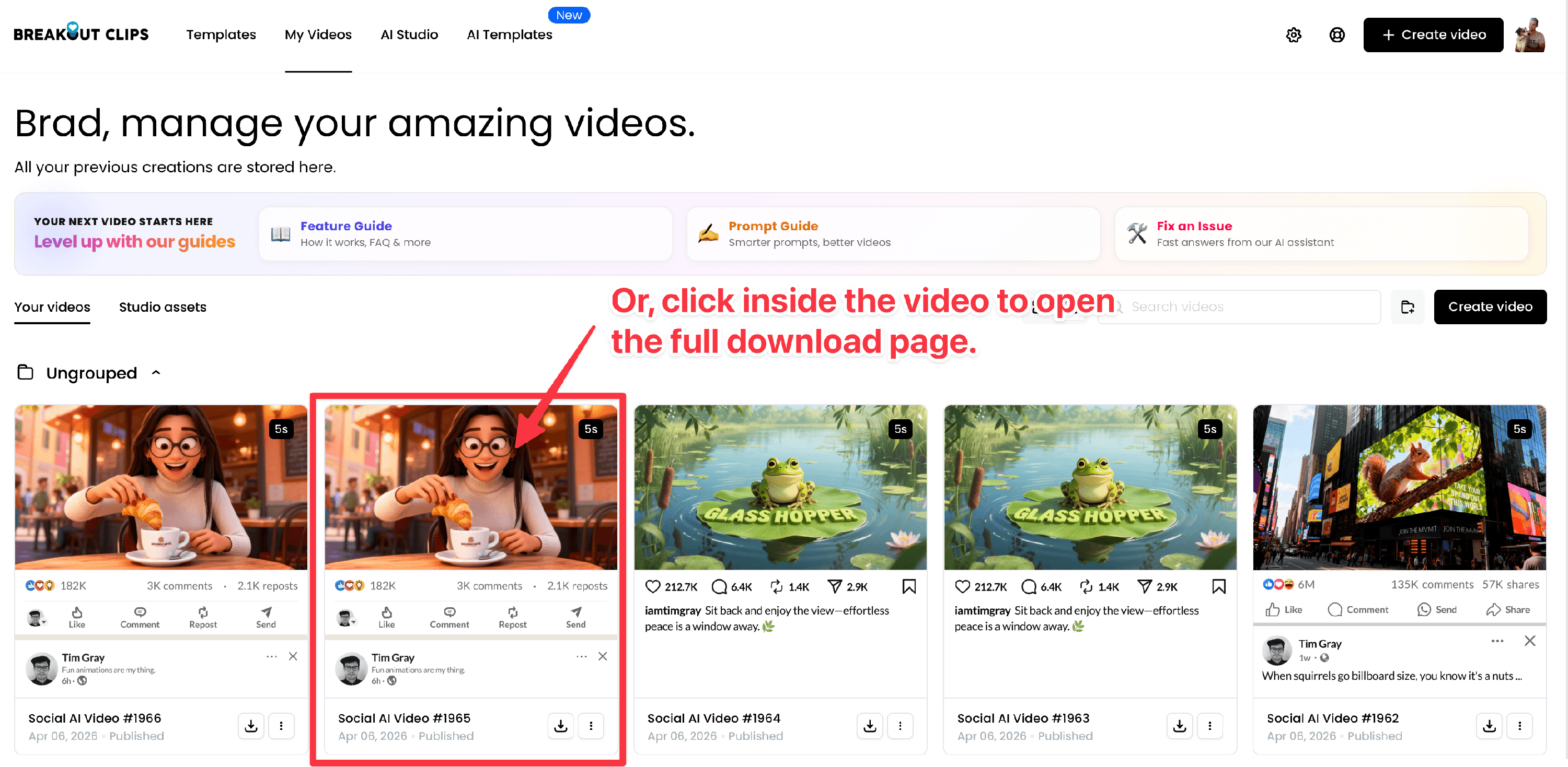 This will open a preview of your video and there will be a Download button next to your video as shown below: