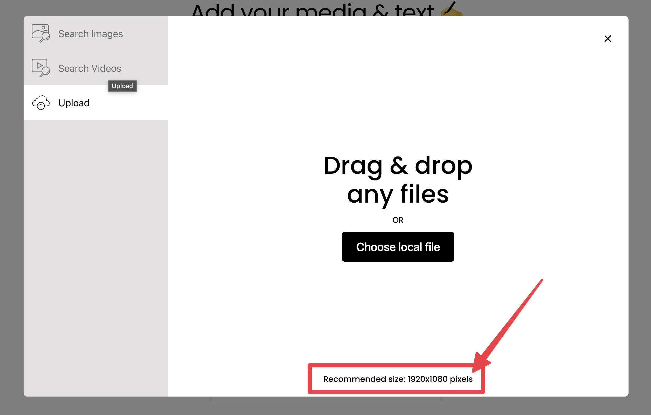In this example, the recommend size is 1920x1080 pixels (this might be different for your video as I explained at top of this tutorial, so please double check).