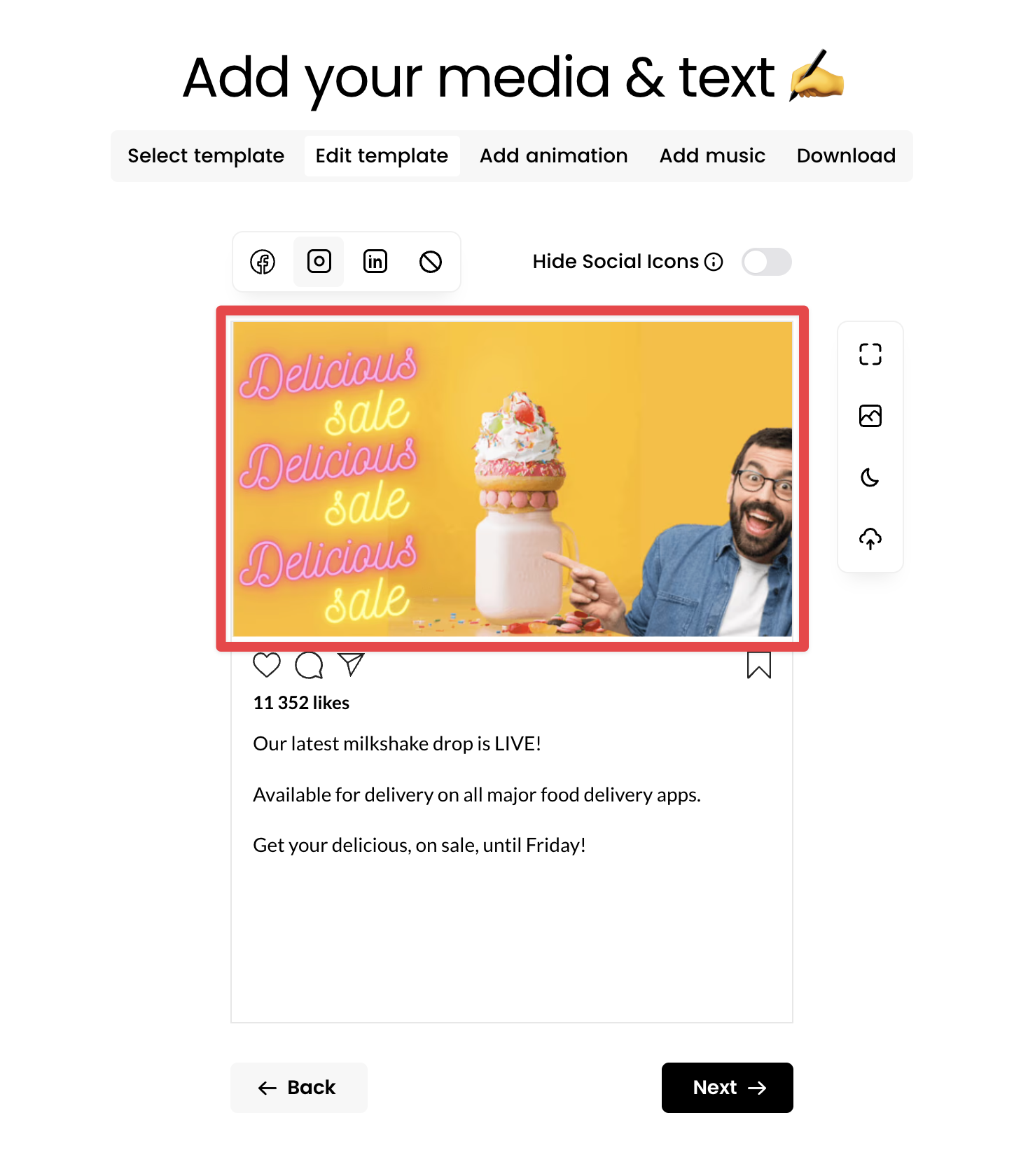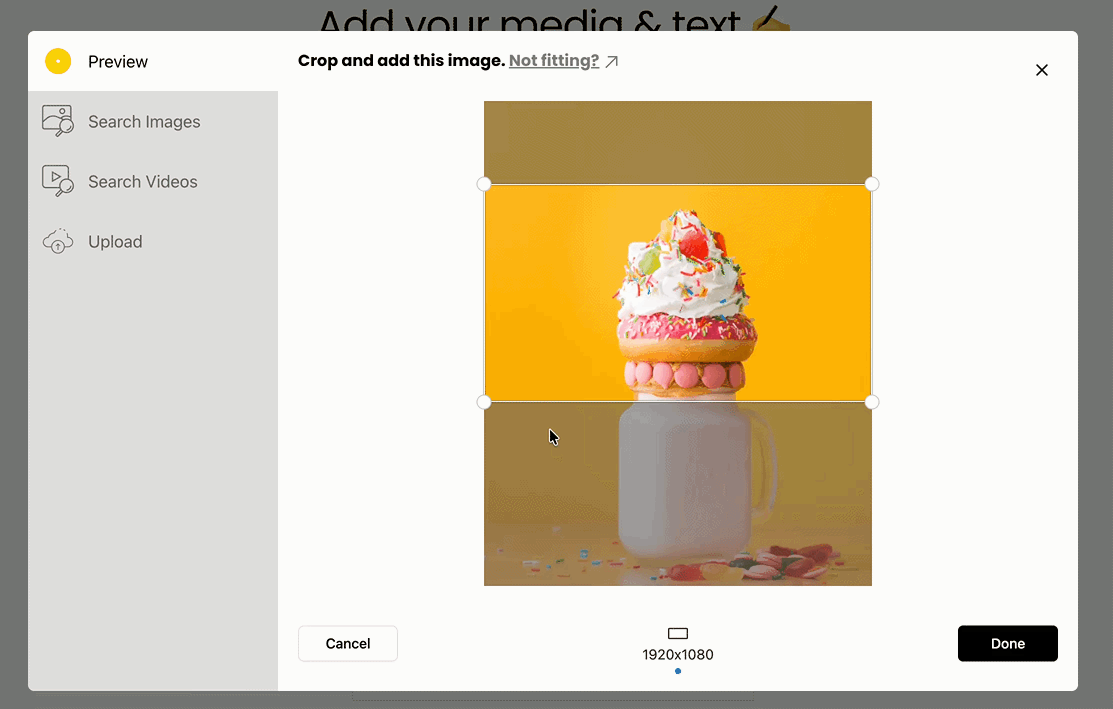 If you cannot make the entire image you've uploaded fit with the cropping tool (such as including the full milkshake in my example above), we would recommend first editing your image into dimensions that match what Breakout Clips recommends.