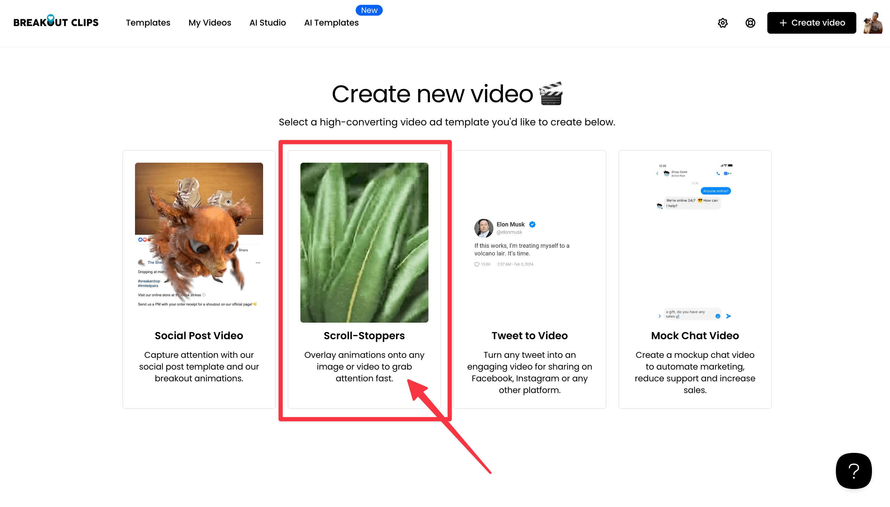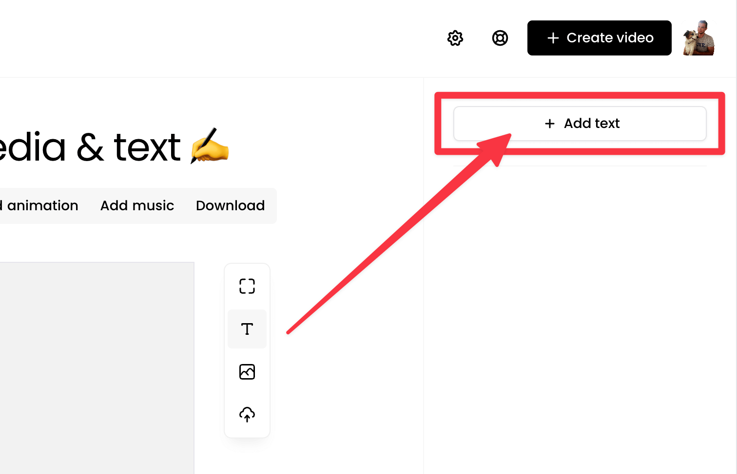 To get started, click the + Create video button in the top right of your account. Select Create without AI.
