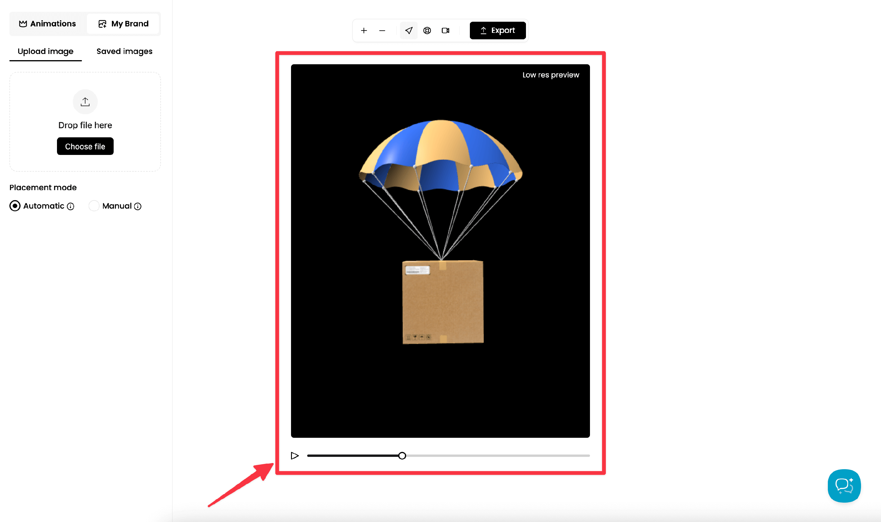 Once your animation is added, it’ll automatically start playing right in the center. Once the playback has completed, it'll pause for you to begin editing (or, you can manually pause it anytime).
