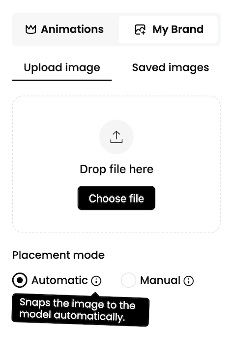 - Below the upload button, you'll be able to select whether you want your uploaded image to be automatically placed for you, or if you'd prefer to place it yourself.