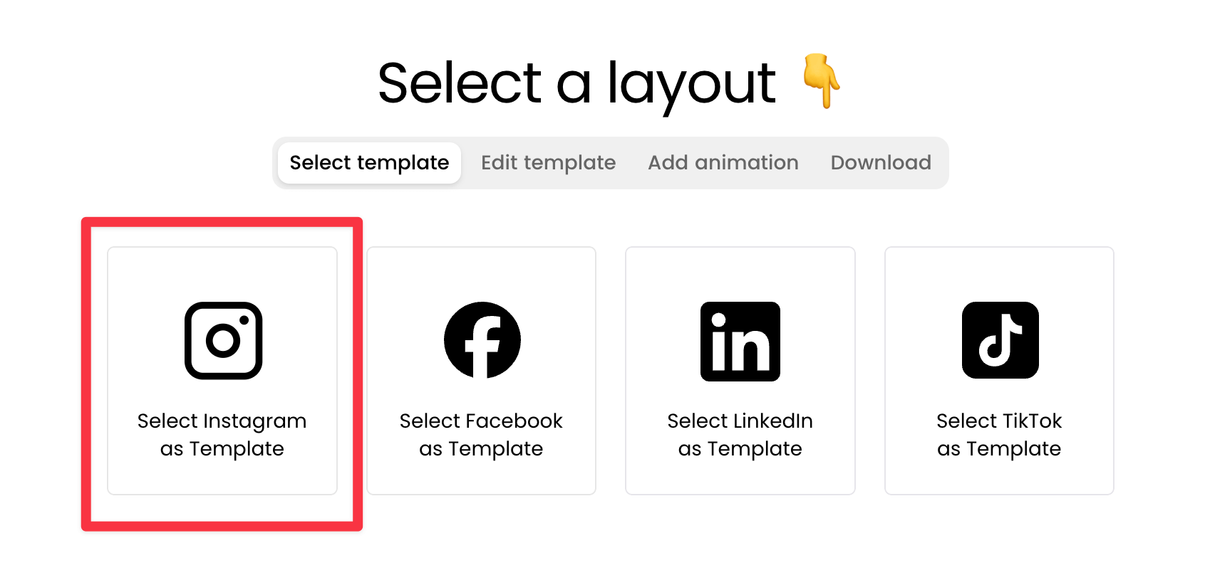 You can click any of these icons to swap out the selected social network layout. Did you pick the Instagram layout by mistake? Switch it to a Facebook layout in 1-click. 🎉